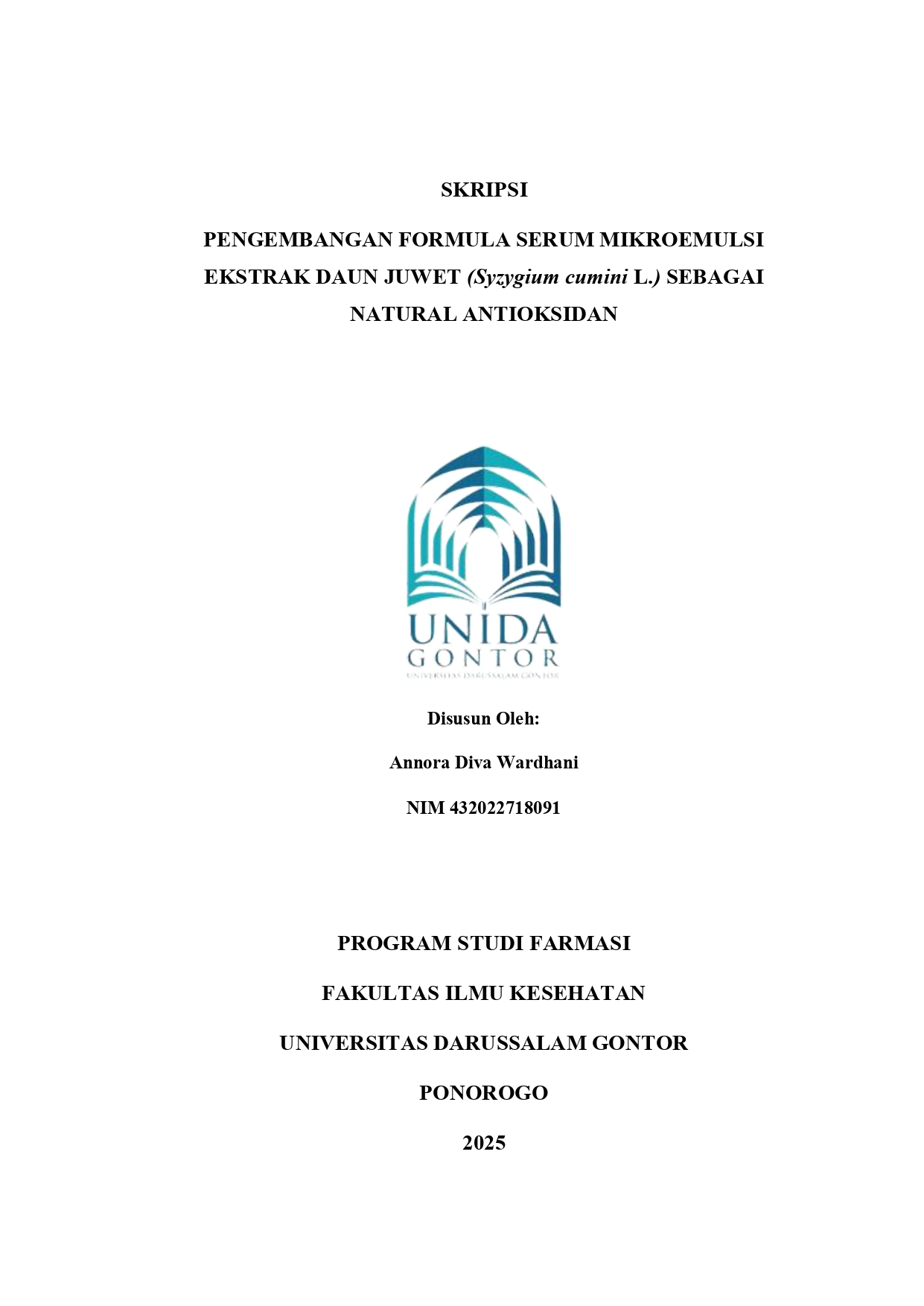 PENGEMBANGAN FORMULA SERUM MIKROEMULSI EKSTRAK DAUN JUWET (Syzygium cumini L.) SEBAGAI NATURAL ANTIOKSIDAN